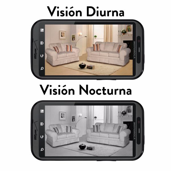 Usted no solo puede escuchar lo que está pasando a través del micrófono incorporado de la cámara, sino que también se puede comunicar con quienes se encuentren cerca de la cámara y ellos le escucharan a través del parlante que tiene la cámara.