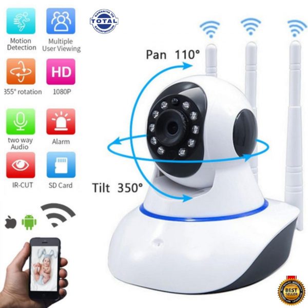 Cámara Seguridad Wifi Full HD Robótica 360º Tres Antenas, Audio Doble Vía, Visión Nocturna…